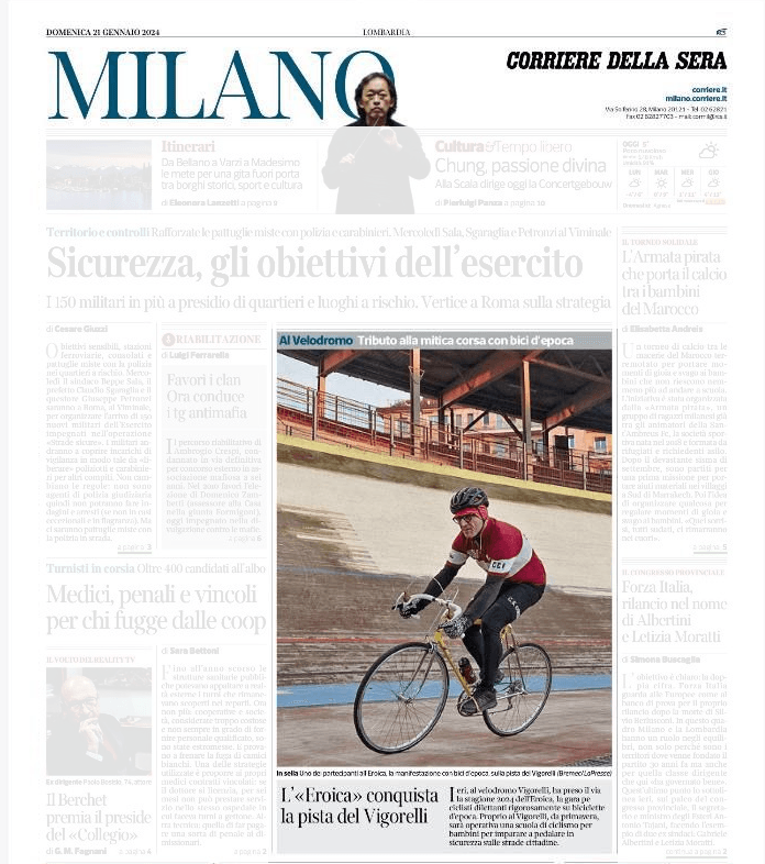 Sabato 20 gennaio 2024 abbiamo realizzato un sogno che inseguivamo da alcuni anni: ospitare gli amici del Ciclo Club Eroica al Vigorelli, unire la prima e più importante ciclostorica e la pista magica. Non per spirito nostalgico, ma perché le bici d’epoca, le strade bianche e i velodromi storici insegnano che dalla storia si può costruire una nuova cultura ciclistica, aperta al futuro.